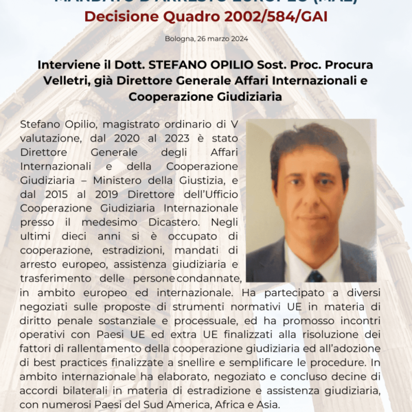 - Dott. Stefano Opilio, già Direttore Generale degli Affari Internazionali e della Cooperazione Giudiziaria – Ministero della Giustizia