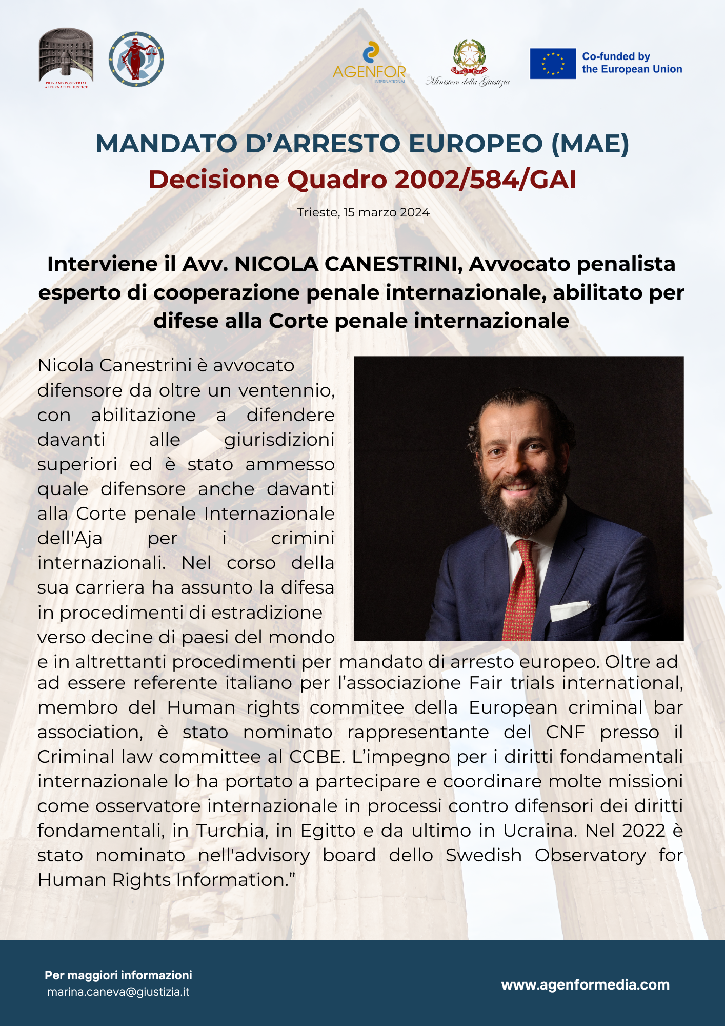• Avv. Nicola Canestrini, esperto di cooperazione penale internazionale, abilitato per difese alla Corte penale internazionale