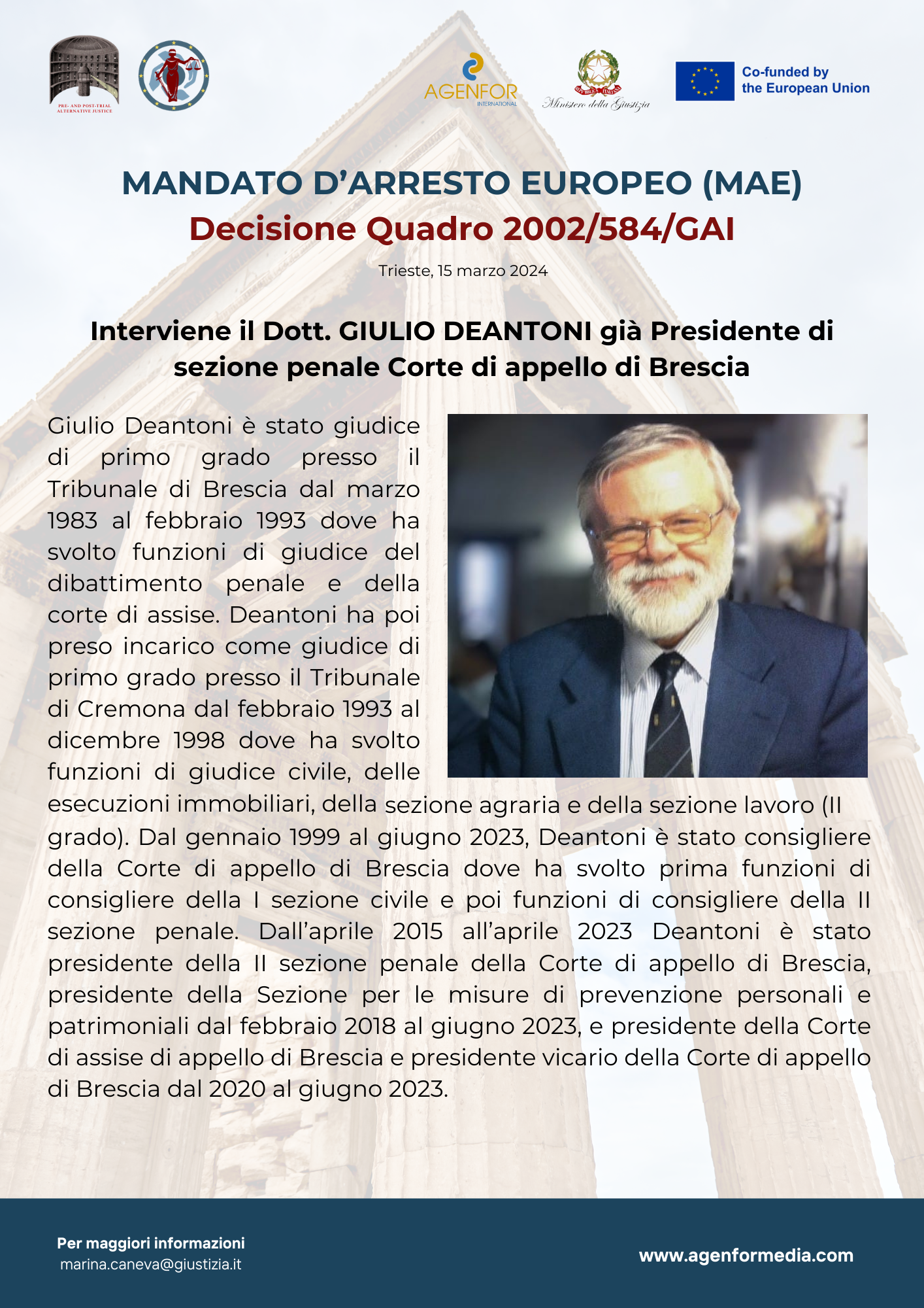 • Dott. Giulio Deantoni, già Presidente di Sezione Corte di Appello di Brescia