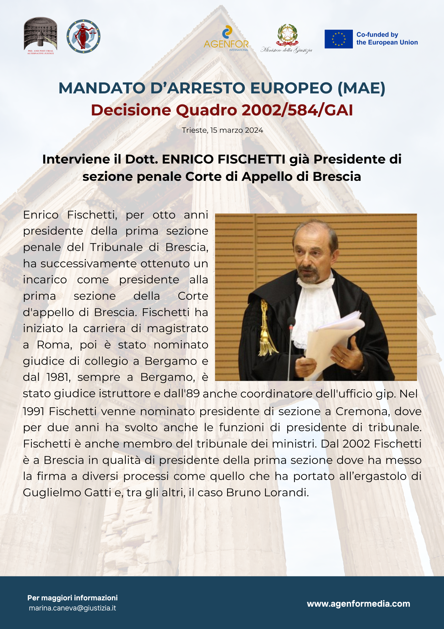 • Dott. Enrico Fischetti, già Presidente di Sezione Corte di Appello di Brescia