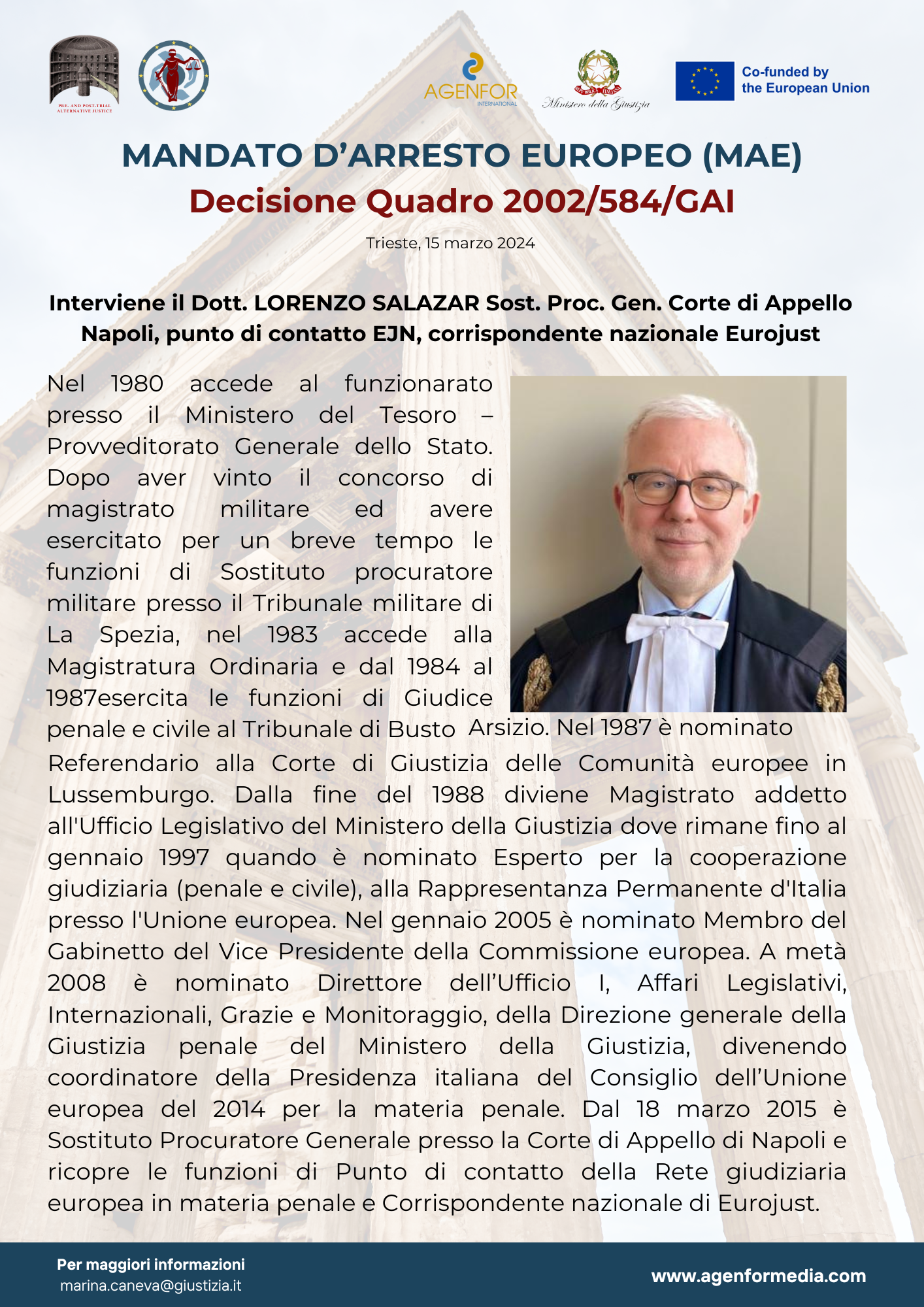 • Dott. Lorenzo Salazar, Sostituto Procuratore Generale Corte di Appello Napoli, punto di contatto EJN, corrispondente nazionale Eurojust